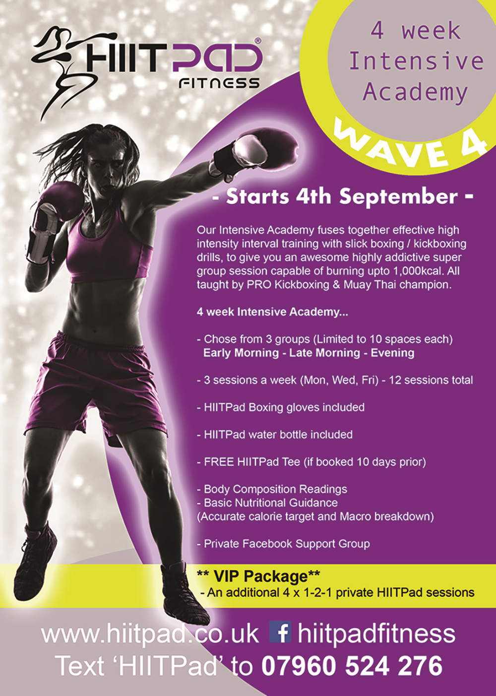 This is strictly limited to 10 people per group. For more information on price, times and dates please email lee@hiitpad.co.uk or text ‘HIITPad’ to 07960524276